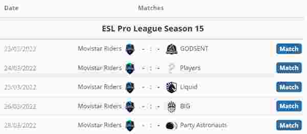 Movistar Riders对阵表: