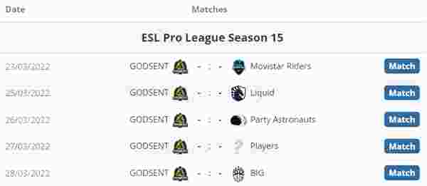 GODSENT对阵表: