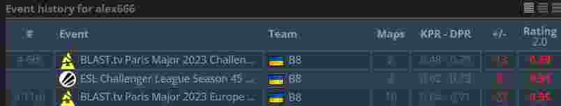 alex666自2022年8月以来一直为B8效力。期间他随俱乐部参加了许多线上比赛。Major方面,队伍在IEM 里约 Major和BLAST.tv 巴黎 Major的欧洲区RMR两次打出2-3战绩。其中,他们又在第二次RMR的附加赛段不敌C9,错失出线的最后机会。两次在终点线前倒下也许坚定了队伍变阵的决心。