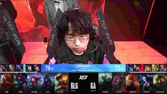 BLG前期就发动凶猛攻势,螳螂Gank上路成功拿下铁男一血,随后与妮蔻在野区发现落单的蔚将其击杀。14分钟左右RA在BLG野区埋伏想要创造机会,可是BLG的支援反打非常及时,侧翼进场的厄斐琉斯反应神速躲开了泰坦的控制,BLG再度破解了RA的进攻。