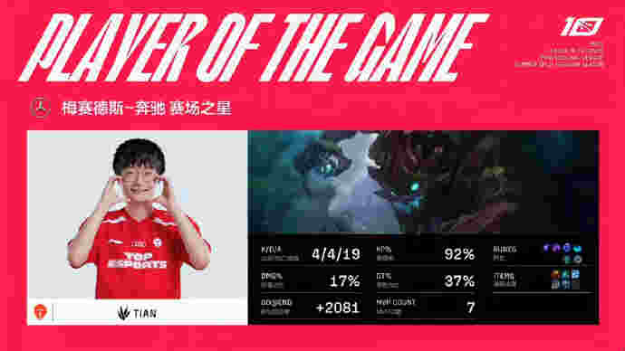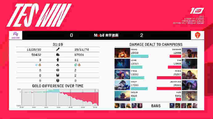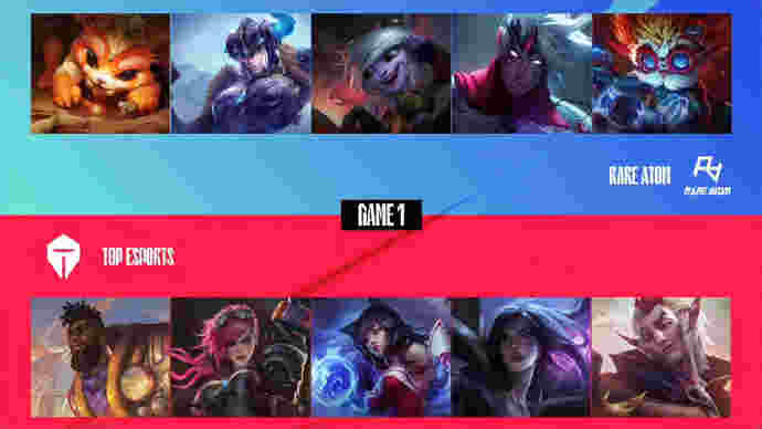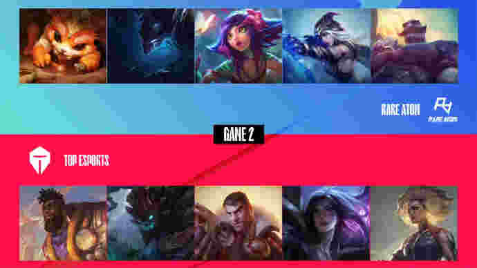 第25分钟,纳尔上路推线,蔚Q过墙将其留住,狐狸魅惑接永霜收掉纳尔人头。TES推掉RA上路二塔转中,大头被狐狸单杀,蔚红丝韦鲁斯,洛再收小炮,TES打出0换4上路一波推平RA基地先下一城。