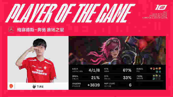 比赛最后一波,第30分钟,TES下路推进,奎桑提冲上RA高地,NOC关灯击杀数奎桑提,卡莎收掉NOC,杰斯瞬间双杀,TES打出1换4一波推平RA基地拿到比赛胜利。