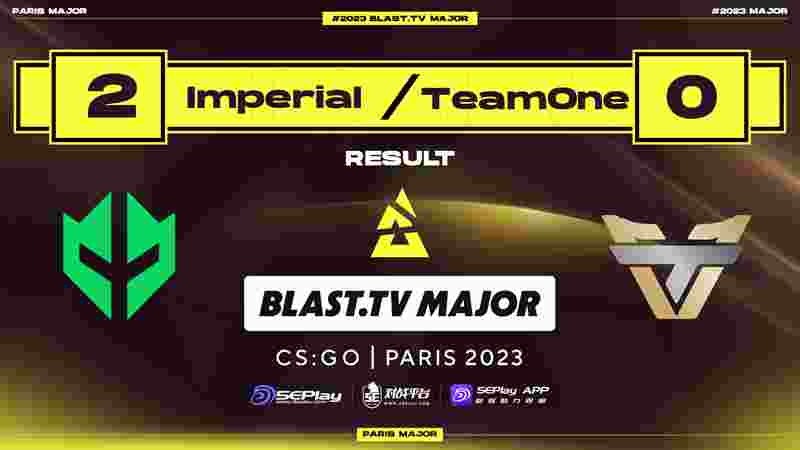 6:00 Imperial 2-0 TeamOne(地图:Mirage 16-3;Overpass 16-0)