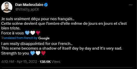 Vitality队长apEX针对法国CS的窘境做出评论,他为目前法国CS的衰落感到遗憾: