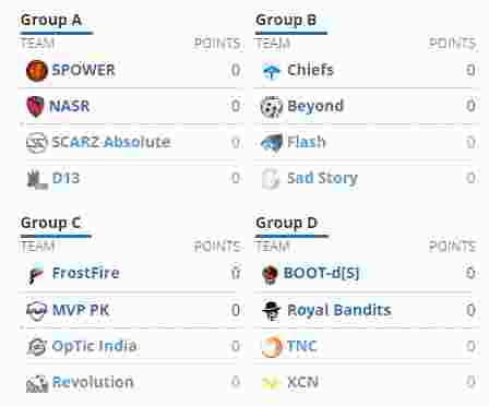 16支队伍将在本次比赛分成四组,本次比赛的分组如下: