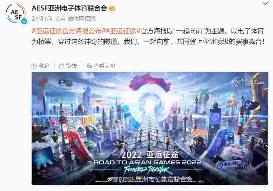 北京时间5月23日,今日AESF亚洲电子体育联合会官博更新,发布亚运征途公布官方海报,并配文:“一起向前”为主题。以电子体育为桥梁,穿过这条神奇的隧道,我们,一起向前,共同登上亚洲顶级的赛事舞台!