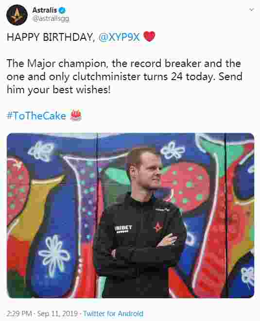 今天是残局大师Xyp9x的24岁生日,Astralis在官方推特中为他送上了祝福:24岁生日快乐,Major冠军得主、打破纪录的男人、唯一的残局大师Xyp9x!来为他送上祝福吧~