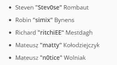 队伍中27岁的比利时狙击手Stev0se将是他们的指挥,波兰组合Matty额n0tice将会打绕后和收割位,而simix和ritchiEE将会打辅助位以及突破位。他们已经有了一些比赛经验,并在当地赢下了不少比赛。
