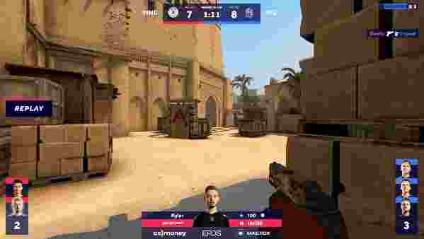 来到下半场,小将hyped单人拿下三杀,但是全员发挥的CT在Kylar拿下双杀后成功拿下手枪局。来到第一个长枪局,外场hades利用烟雾弹拿下双杀帮助队伍拿下分数。关键的第20回合,进攻方在人数优势的情况下,出现了枪法失误,mynio和Kylar分别拿下双杀帮助队伍拿下分数,将比分追平至10-10。此后,多人发挥的CT凭借着枪法和道具的互相配合,不断拿分。终于,在第23回合,进攻方手枪爆弹打A成功拿下分数。但马上,Kylar拿下关键双杀还以颜色。此后,多人发挥的CT不断拿下分数,在mynio单人铁板1v3后,9INE成功拿下赛点。此后,进攻方在tabseN拿下关键的1v2残局和faveN的1v1残局后将比分追至14-15。最后一回合,进攻方在占领包点后,Goofy回防拿下单人三杀,帮助队伍将比分锁定在16-14,9INE艰难拿下图一。