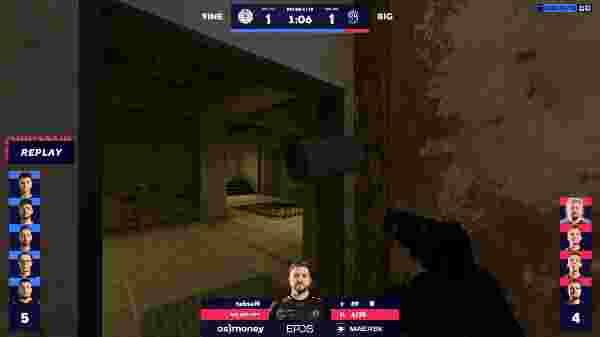 来到上半场第一个手枪局,进攻方抱团走A大,多人枪法发挥的CT成功拿下第一分。来到第一个长枪局,hades大狙拿下关键双杀配合kylar拿下双人四杀,帮助队伍取得4-0的开局领先。此后,第6回合Krimbo突破拿下三杀帮助队伍拿下第一分。关键的第8回合,CT纯E在Goofy单人拿下四杀完成最后的1v1残局后后帮助队伍以6-2再次扩大领先。此后双方互有胜负,在faveN拿下残局双杀后,BIG将比分追至5-8。在上半场的最后,mynio拿下三杀帮助队伍在上半场以9-6领先结束。