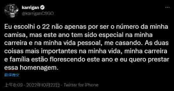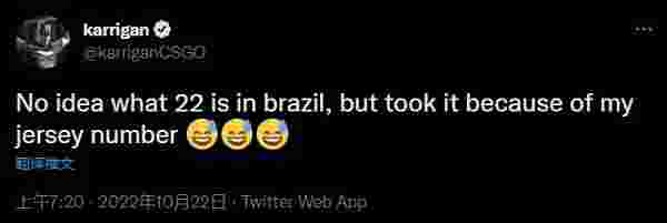 没想到karrigan的贴纸也会和政治立场扯上关系... CSGO刚刚更新了IEM 里约Major贴纸,众多参赛选手纷纷在推特上秀出自己的选手签名贴纸。但FaZe战队指挥karrigan没想到自己的贴纸会横生波澜。 karrigan的贴纸设计中把字母“r”换成了可爱的数字“2”,但在部分巴西CSer眼中,22却是karrigan为别人拉票的证据! 目前巴西正在进行总统选举,现任巴西总统博索纳罗也宣布参选,而他的号码正是22号。博索纳罗外号“巴西特朗普”,因此博索纳罗的反对者们认为karrigan在为博索纳罗拉票! karrigan最初发布了一则推文解释:选择22只是因为这是自己的队服号码。 但似乎这则解释别人并不买账,随后karrigan又用葡萄牙语发推再次解释:22不仅仅是我的队服号码,而且今年(2022年)是我工作生活双丰收的一年。今年我Major夺冠的同时,也组建了自己的家庭。我只是想纪念一下。 只能说karrigan这波属实躺枪了...不过karrigan并不是唯一一位遭受这种“捕风捉影”式攻击的职业选手。先前PGL 安特卫普Major贴纸开售后,社区中就有部分玩家开始对sh1ro的签名设计进行恶意揣测,在他们看来签名下方的波浪线很像是符号“Z”(在西方舆论中'Z'与'V'被认为是“支持俄罗斯”的象征)。sh1ro只能无奈回应: 不要在本就没有特殊含义的事物上强加罪行。