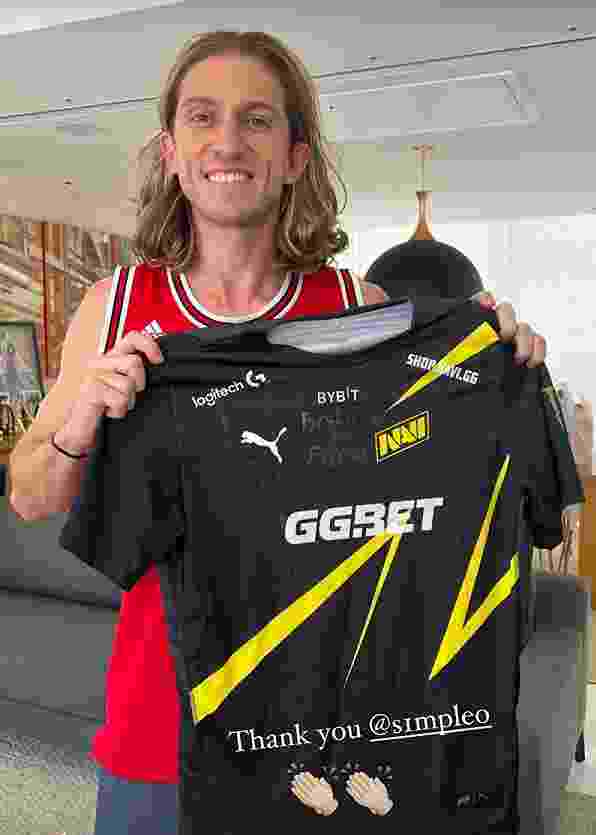 s1mple向巴西足球运动员菲利佩·路易斯赠送了一件签名队服,并亲手写上了美好的祝福。后者在自己的社交平台晒出了照片。