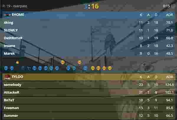 TYLOO vs Ehome 3-0(Mirage 16-11;Inferno 16-10;Overpass 16-3;)
