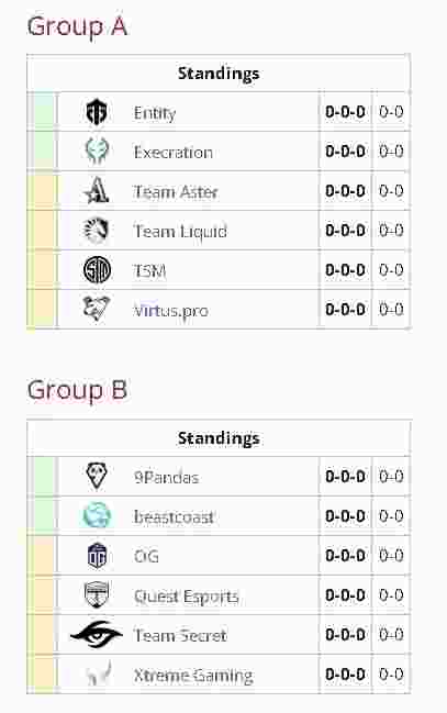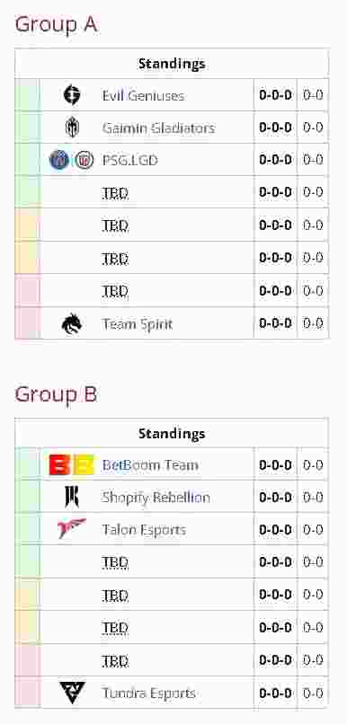 同时,小组赛阶段的分组也公布了。7月21日-24日为小组赛阶段,8支通过入围赛晋级的战队将与8支种子战队一起也分为A、B两组,进行bo2循环赛,争夺12个淘汰赛名额。小组的1-4名进入淘汰赛胜者组中,5-6名进入淘汰赛败者组,7-8名直接被淘汰。