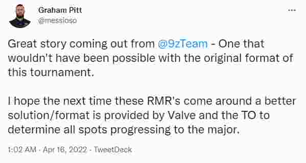 “我希望下次RMR时,V社和赛事主办方能够设置更合理的赛制,来确定所有的Major席位。”