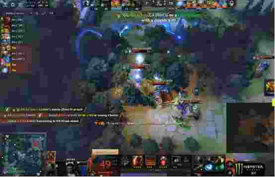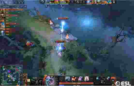12分半双倍符的火猫推掉中路一塔,同时上路虚空罩大想和巫妖杀赏金,但是赏金有先锋盾输出完全不够,GG想要反打但是火猫支援赶来将光法冰女陆续击杀。