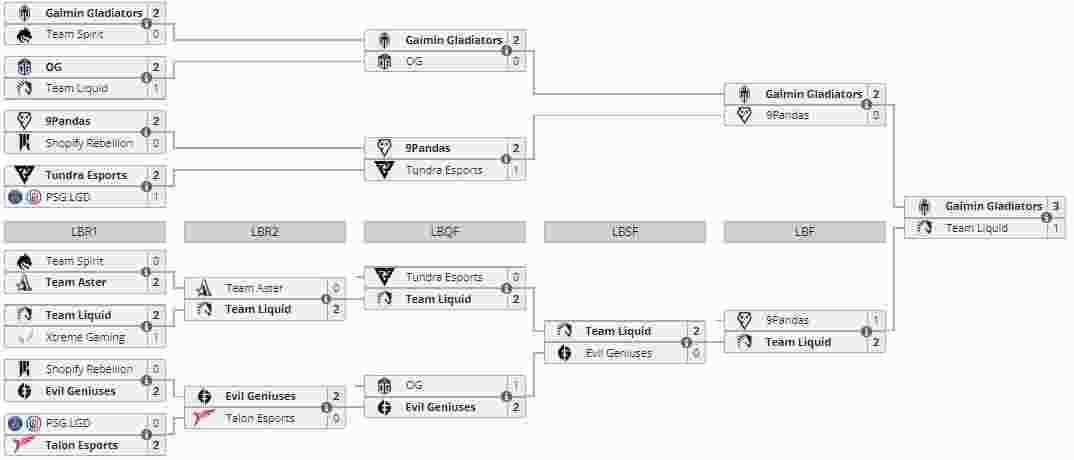32分钟Liquid发起先手,紫猫和熊战士直接秒掉了神谕,而炼金开启摇摇乐但是吃了末日大招,炼金虽然自爆但是爆了两人,Liquid神谕炸弹人阵亡,双方三个辅助交出买活,但是末日没了技能被追死,炼金帕克再杀紫猫炸弹人,GG顺势破掉三路高地,Liquid等到人员复活发起反扑但是换来四人阵亡,Liquid打出GG,GG赢下第三局。