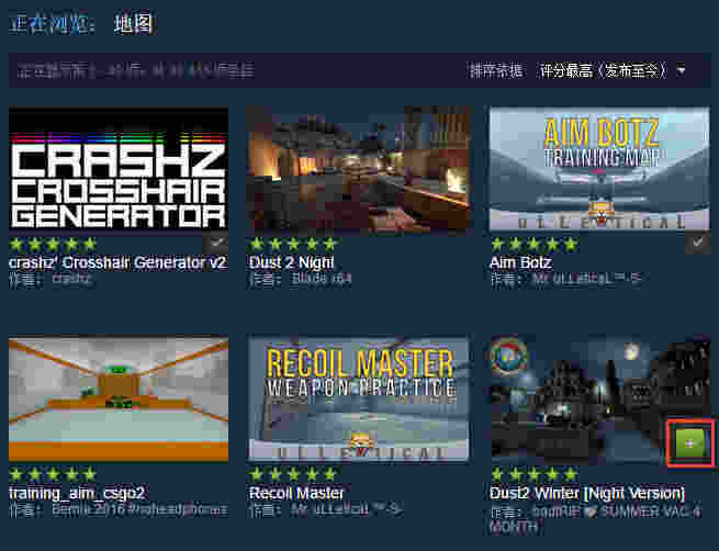 点击查看创意工坊则可以找到各式各样的创意工坊地图,绿色的“+”则可以下载地图。