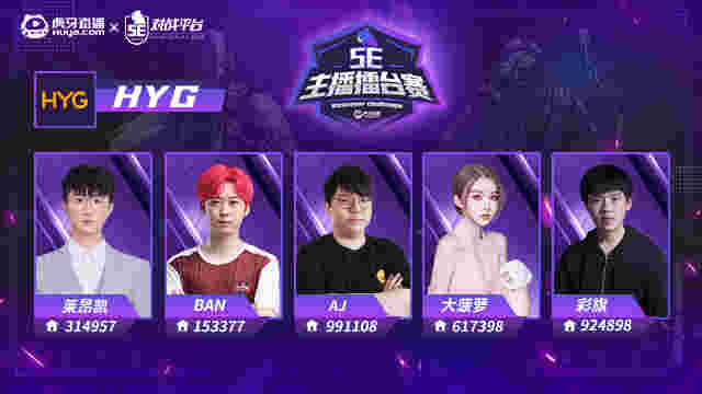 最后一支攻擂队伍是由英雄联盟主播AJ、彩旗与CSGO主播莱昂凯、BAN以及大菠萝混搭队伍HYG。能抗压能CARRY的”古风美男“AJ将继续在擂台赛中大放异彩,彩旗在上次比赛中的表现也给到我们惊喜,这次他们联手CSGO主播们能否再进一步?我们拭目以待!