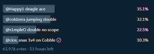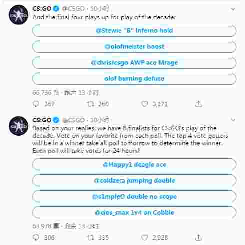 今天凌晨,CSGO官方Twitter发布了一项投票,希望广大CS玩家们选出自己心目中的CSGO史上最经典场面。