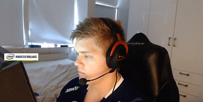 被捕捉到的画面显示,当时比分是在4-4,blameF在注意到下一回合比赛马上要开始的时候,急忙将手机扔到了床上便继续开始比赛。