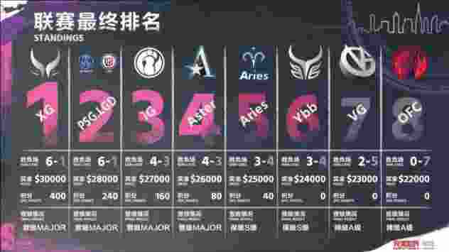 - Aries第5名,获得40点DPC积分,25,000美元的奖金,成功保级