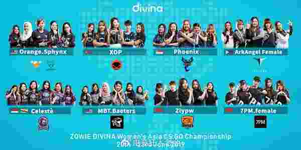 2019年5月ZOWIE宣布ZOWIE DIVINA女子CSGO亚洲赛正式开赛经过几天的激烈比赛最终中国的7pm和Elypw成功晋级上海线下赛,6月末来自亚洲的8支女子战队齐聚魔都上海经过了几天的激烈对战,最终来自中国的7PM和来自马来西亚的Orange.Sphynx携手拿到去往西班牙-DreamHack瓦伦西亚站的门票,她们将和来自全球的另外6支队伍争夺最后的世界冠军。
