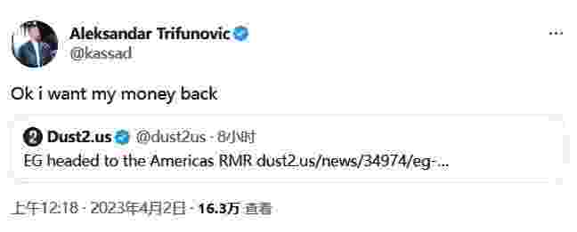 没想到如今EG竟然捡漏美洲RMR的参赛资格。这也让kassad大呼上当,在Dust2.us的评论区中直言:我想要回自己的钱!
