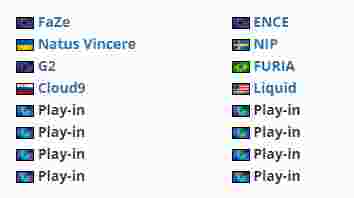 另外还有七支队伍依靠ESL排名获得了play-in阶段的参赛资格,他们分别是Astralis、Movistar Riders、BIG、MOUZ、Spirit、Imperial以及paiN。