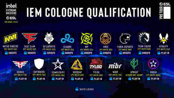 除去直接参加IEM科隆站主赛事小组赛的八支队伍,还有16支参加play-in阶段的队伍ESL也一同公布。该名单由Heroic和Vitality领衔,MIBR、COL、VP、GODSENT、Sprout、TYLOO以及ORDER都将出战play-in阶段。