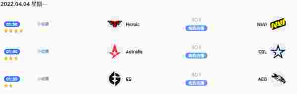4月4日赛事预告: