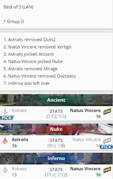 Astralis 1-2 NaVi (Ancient 4-16;Nuke16-14;Inferno13-16)