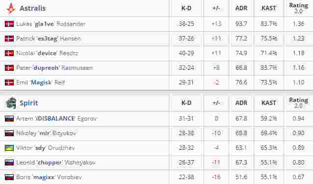 Astralis 2-0 Spirit(Overpass 16-7;Nuke 16-10)