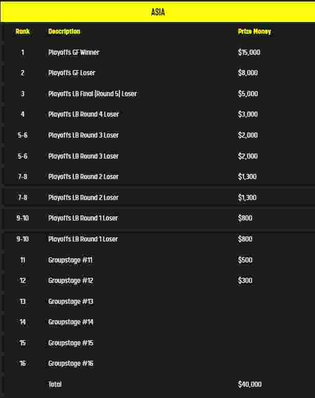 亚洲区: 2023年8月15日开始,在EPL S18期间休息。