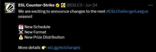 ESL宣布,他们将对今年接下来的ESL挑战者联赛(简称ECL)的赛事规则进行调整。由于ESL S46被推迟到8月,ESL根据参赛队伍的反馈,决定将今年最后的两个赛季合并为一个赛季,以优化赛程安排,确保其减少与其他EPT赛事重叠,为ECL的参赛队伍提供充足的喘息空间和休息时间,创造更好的体验。
