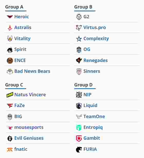 A组中,Astralis、Heroic和Vitality是出线热门,他们与Spirit、ENCE和Bad News Bears同组,后三者则希望在8月16日至20日的比赛中异军突起。