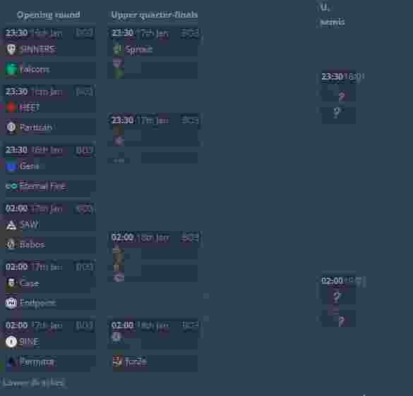 ESL在不久前正式公布了EPL S17 Conference各赛区的赛程及首轮对阵,各赛区的比赛都在1月16日-1月21日这个区间内进行。