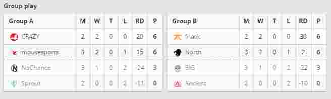 North 2-0 BIG;Mousesports 2-1 NoChance