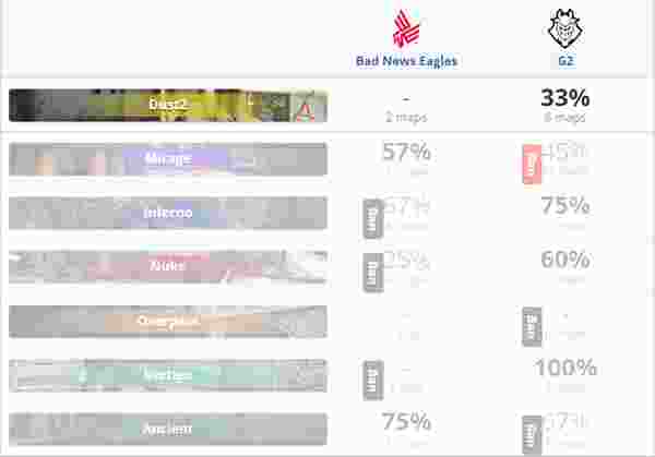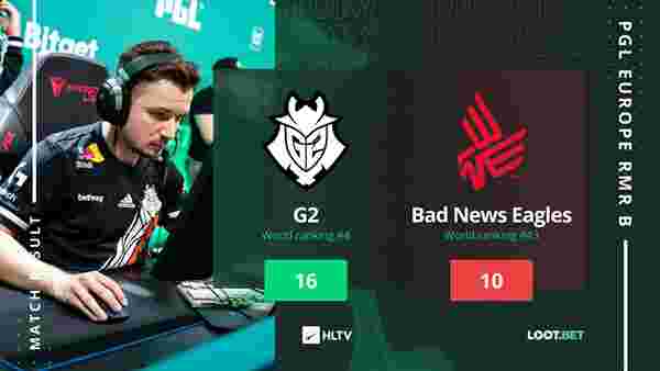 欧洲RMR:本场比赛由Bad News Eagles对阵G2,G2在进攻端便以强硬的枪法占到了比分优势,而攻守互换后Niko的一个关键沙鹰四杀则彻底杀死了比赛。