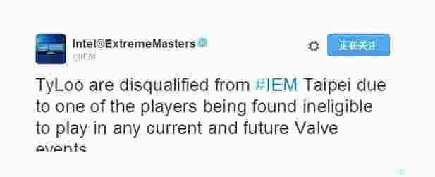 就在IEM台北站B组的比赛开战前一小时,组委会发现茄子曾有被VAC封禁的记录,由此取消了TyLoo ESL的参赛资格,茄子被终身禁赛。