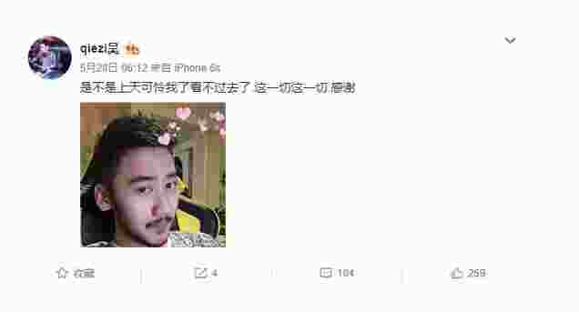 2018年5月28日,茄子发了一条微博,“是不是上天可怜我了看不过去了.这一切这一切.感谢”。