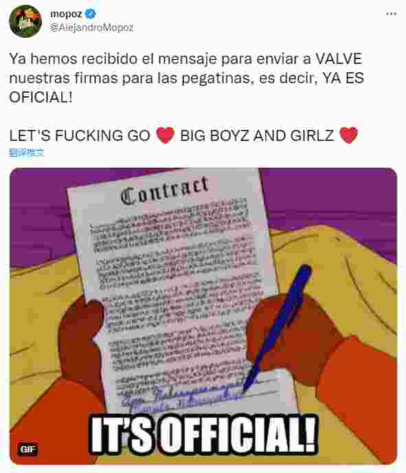 Moviestar Riders的选手mopoz今日发推称,已经收到Valve要求他们提交签名的消息。推特中他十分激动,并表示自己的贴纸梦就要实现了。