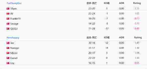 首图是Newhappy选择的Nuke,先做进攻的他们来势汹汹,多次直接以个人能力正面硬刚TCG的防守阵型,但TCG的补防亦是快速高效,上半场Newhappy没能占到便宜还落后一分。来到防守方后Newhappy屡次拿到首杀,取得以多打少的防守优势,TCG放慢进攻节奏但仍然无法扭转局势,下半场仅拿三分,Newhappy气势如虹16-11赢下图一。