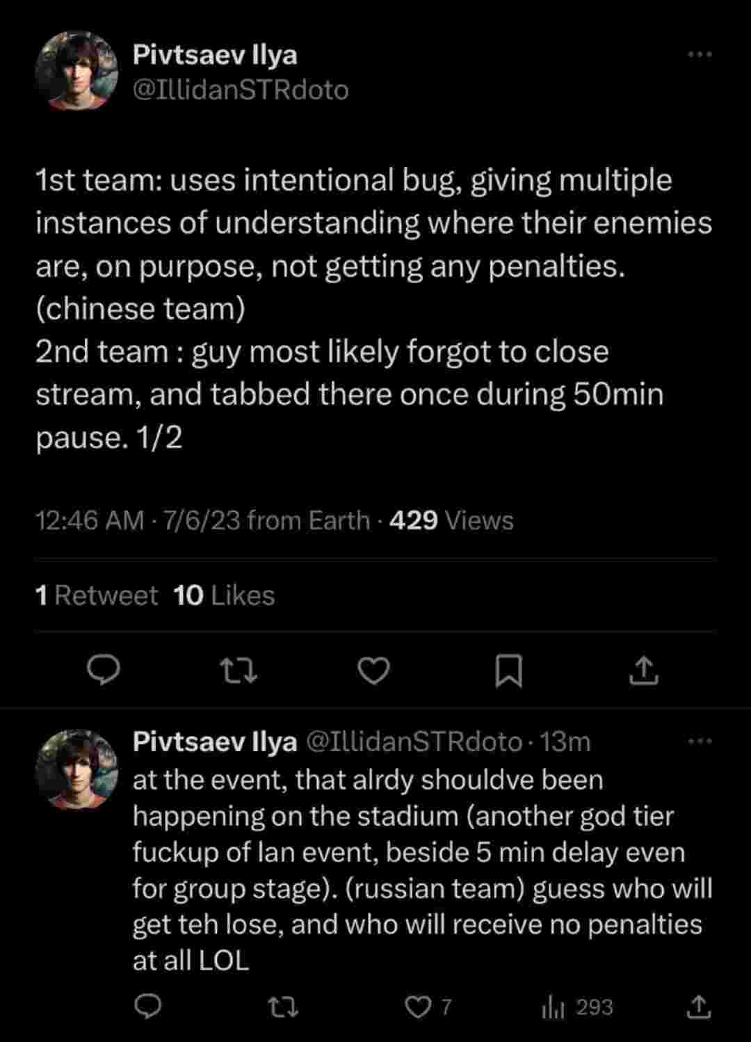 前VP选手、俄区著名带头大哥illidan发文职责主办方对BB惩罚过重,并谴责主办方失职以及试图为Pure洗白。