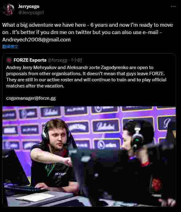Jerry已经在FORZE效力六年了,期间FORZE进行了多次人员变动,但是Jerry都被留了下来,并且成为了FORZE的主力选手。今年25岁的Jerry在推特上表示,在FORZE效力了这么久,现在他“准备好继续前进”了。