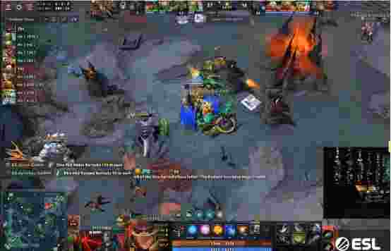 随后9pandas控下肉山,血魔带盾。27分钟双方交战,小小一套先手秒掉拉比克,而GG的圣堂刺客和火猫开启BKB击杀赏金天怒后再追死小小,随后火猫滚魂TC二连再杀小鹿,9pandas被打出一波四人阵亡。