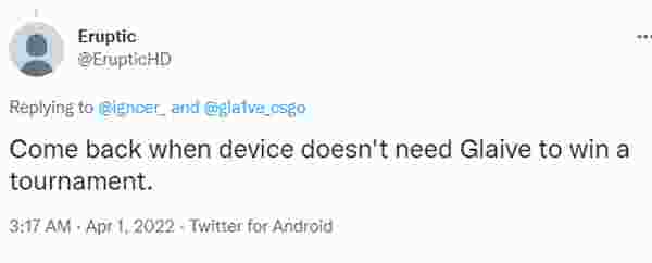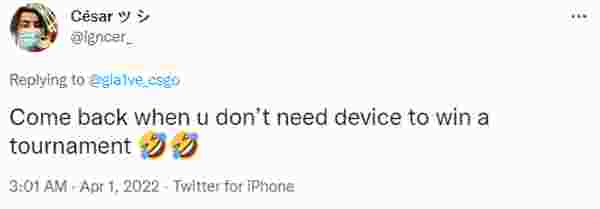 gla1ve也是直接硬钢:“憋吹了,等你真正拿了个上的了台面的冠军再来叫吧”