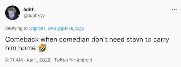 “等comedian不需要stavn带飞再来叫吧”