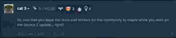 Steam用户cat 3:我太懂了, 你把十周年的皮肤和贴纸扔给社区做,然后你们偷偷埋头苦干整起源2,酬勤酬勤。我说的没错吧?