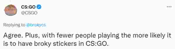 这波钩直饵咸的操作直接把CSGO官推给钓上来了:同意。告诉你个有意思的,这枪用的人越少,broky就越有可能出贴纸哦。
